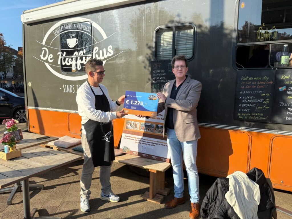Tijdens het 25-jarig jubileum van Driepunt vroeg Gerwin Jonker (eigenaar) relaties om, in plaats van cadeaus, een donatie te doen aan De Koffiebus. Het resultaat? Een prachtige cheque van maar liefst € 1.275, -.